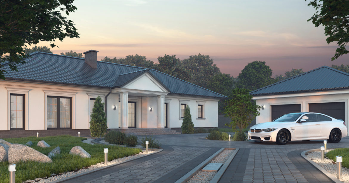 Facade project made for individual client based on classic. Use of subdued colors and stucco facade.