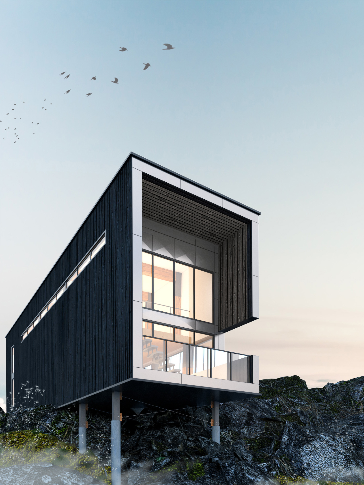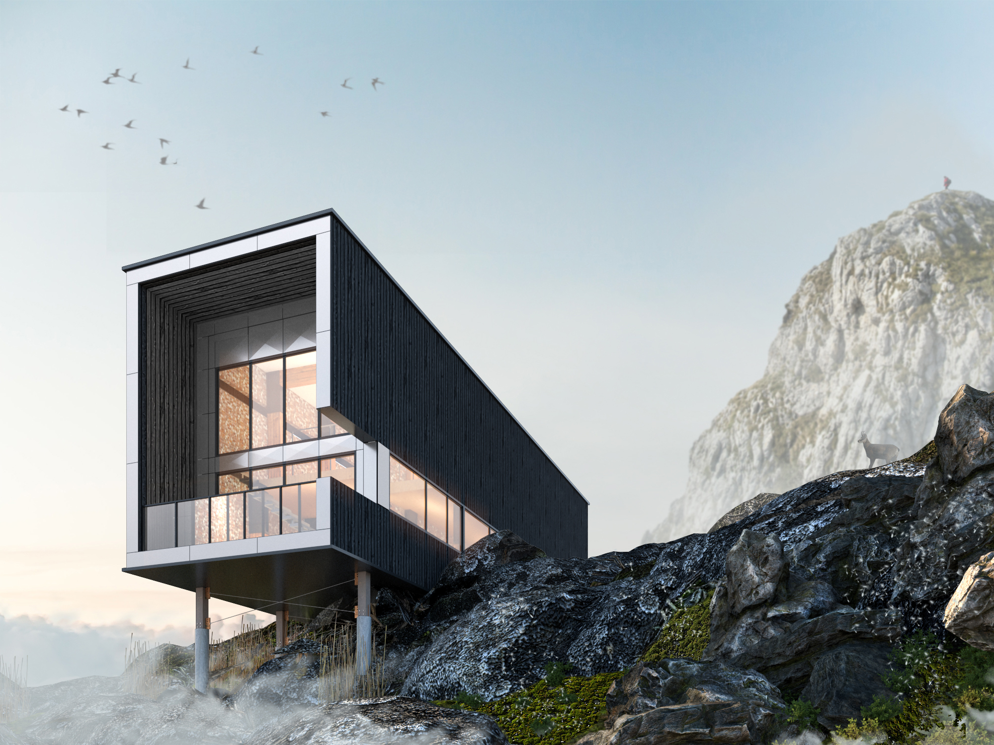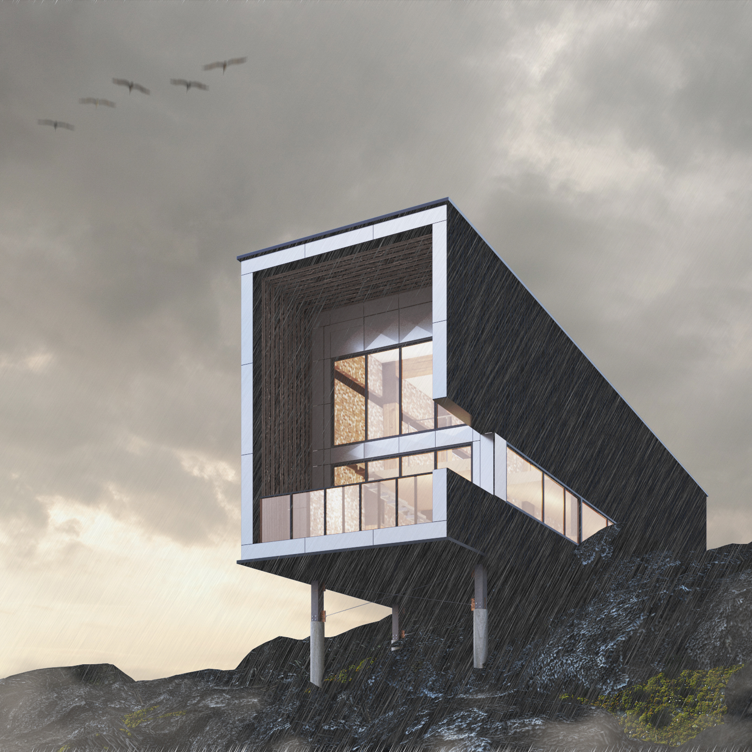 Own work. House based on container adaptation projects as a residential building. Building located on the rock.